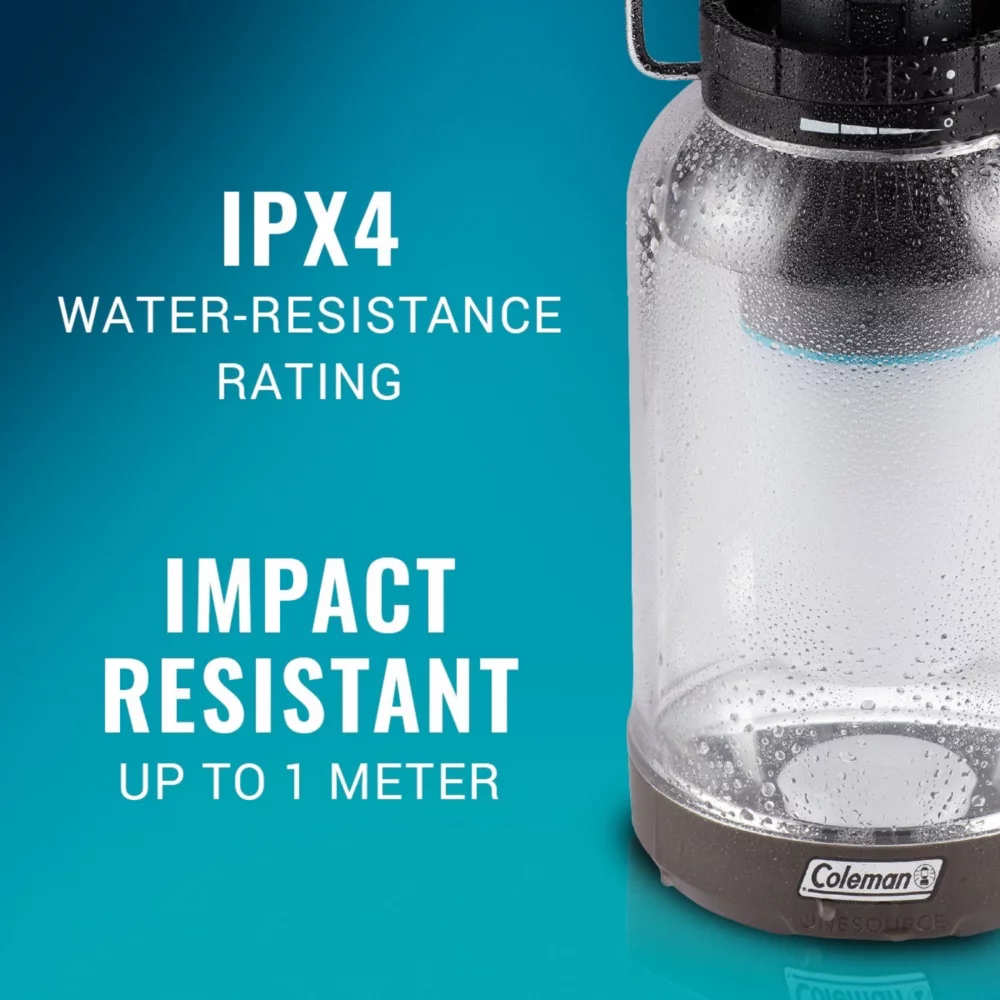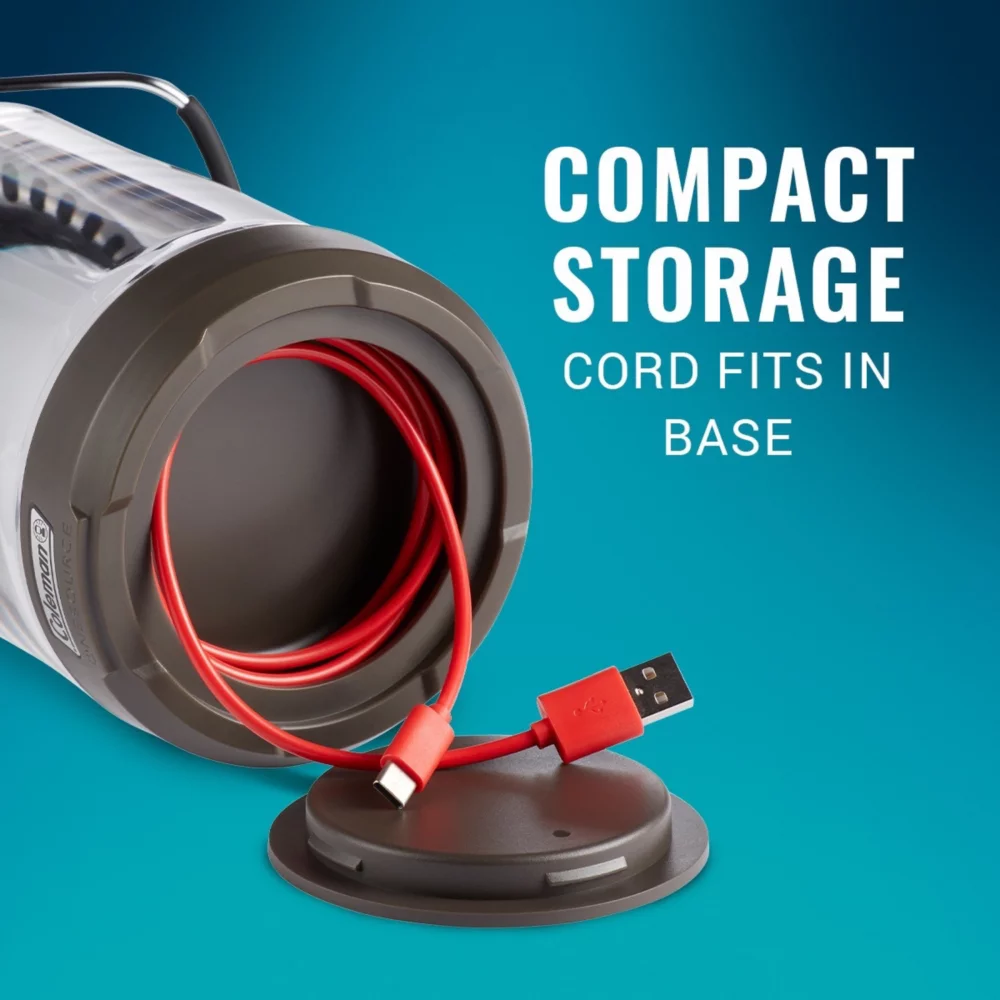 Part of a system that powers outdoor gear, the Coleman® OneSource™ 1000 Lumens LED Lantern lights the night up to 2 hours (high) or 100 hours (low) on a full charge of the lithium-ion battery (included). For your convenience, the battery can be recharged from wall outlets, vehicles, other OneSource batteries, or universal power packs with the included USB cord. Bonus? The OneSource battery helps eliminate the need for multiple power sources by letting you charge external devices, like smartphones or tablets (not included), through a USB port, even while powering gear. One system, one source, power anywhere!