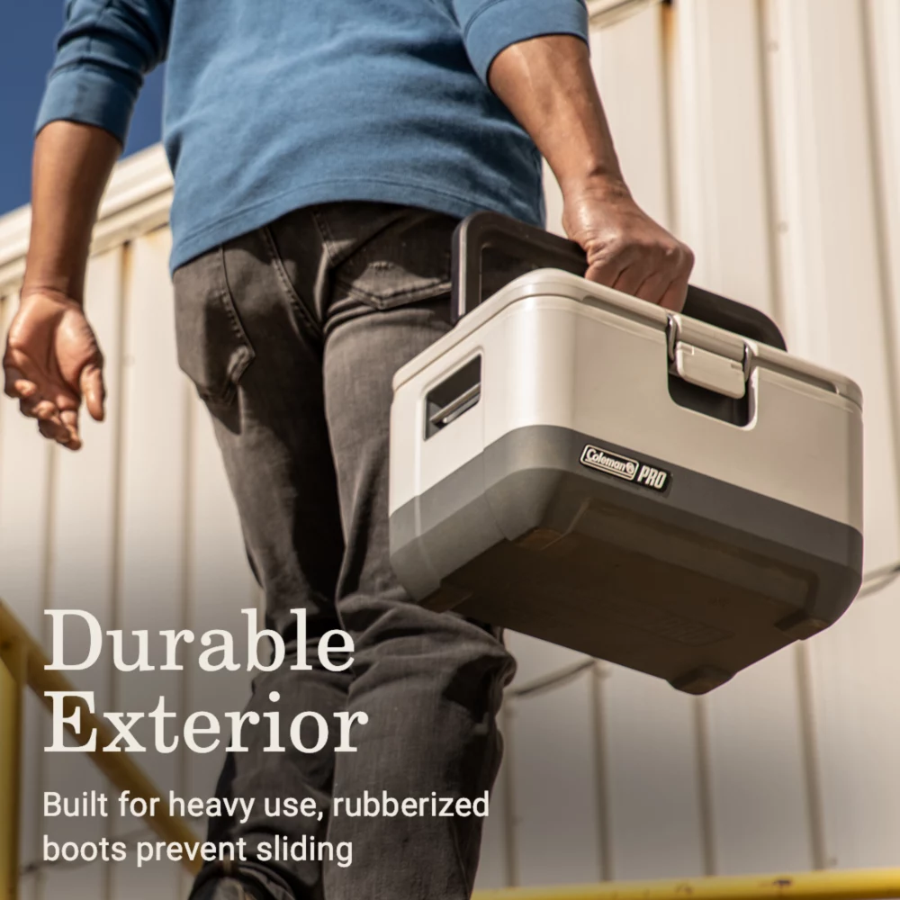 Coleman Pro is gear that works hard like you. It is purpose-built for everyday use in the most demanding environments. The Coleman Pro 9-Quart Hard Cooler will keep your lunch cold, thanks to a TempLock FX™ full-insulated body and lid with a gasket to help keep the cold inside. A durable exterior with rubberized boots helps prevent this Coleman cooler from sliding around in the bed of your truck. And an antimicrobial treatment to the interior helps protect it from odor causing bacteria. Gear up with confidence knowing this Coleman cooler comes with a 5-year limited warranty. Work smarter, not harder with clever additions like a flat top that can be used for writing work orders, plus this lunch cooler can support up to 300 pounds so you can use it as a seat.